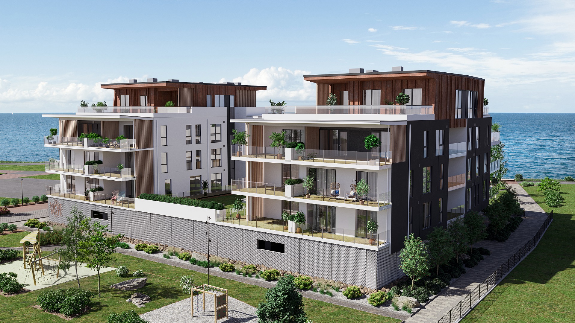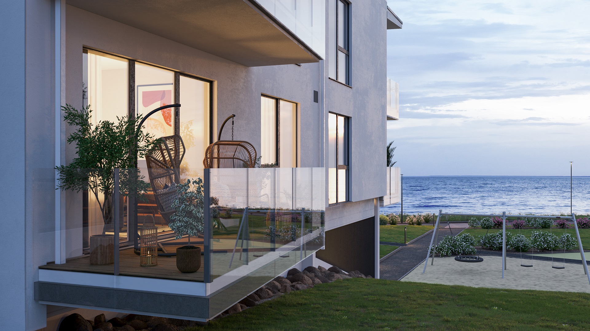 Atraktiivsed 4-5 toalised merepoolsed perekorterid. Iga maja 5. korrusel on üks luksuslik suurte terrassidega ning avara merevaatega penthouse, kuhu pääseb otse liftist.